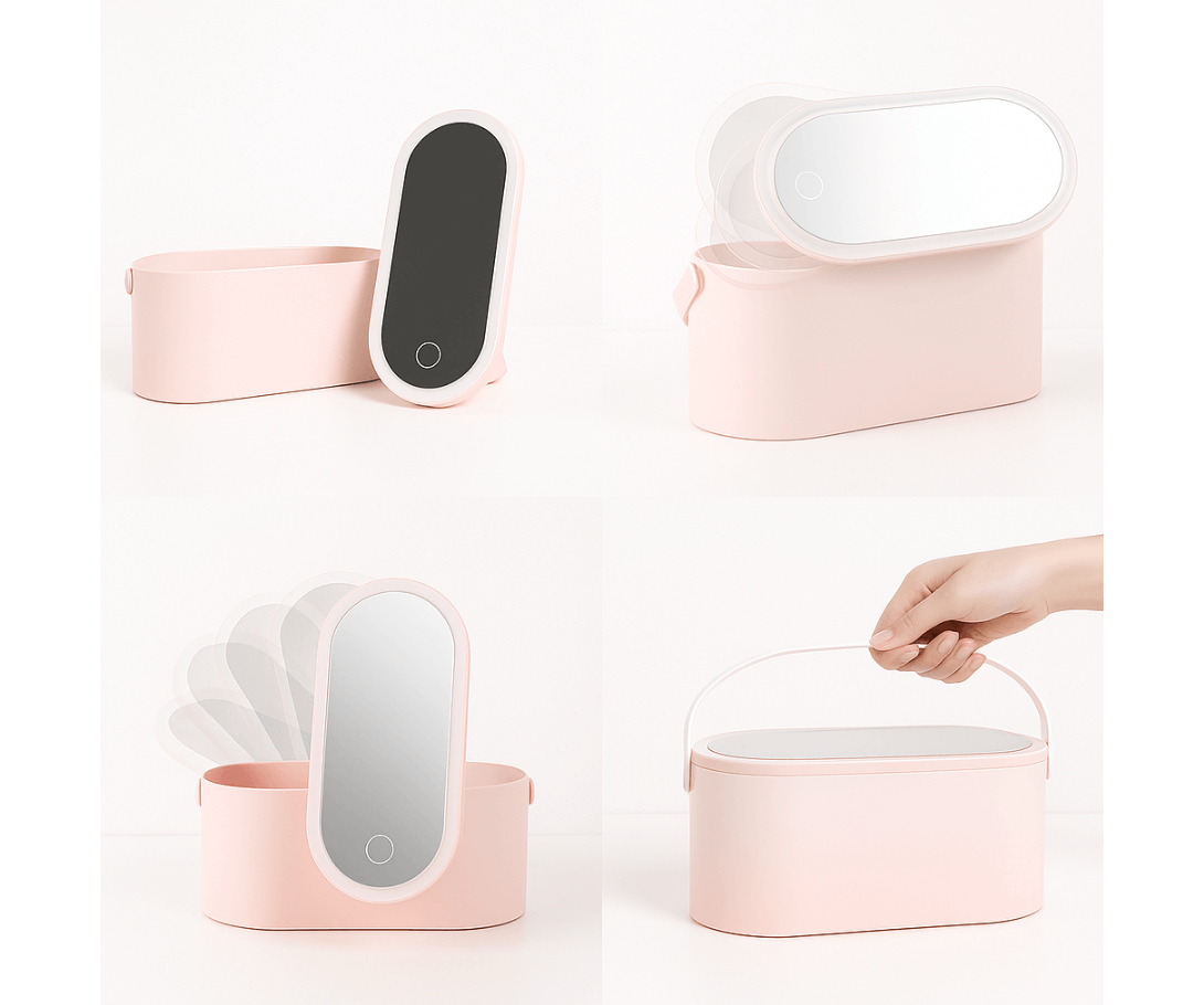 Mit ihrer klaren Formensprache, den sanften Farbverläufen und dem modernen Finish fügt sich die Box nahtlos in jedes Wohnambiente ein. Die durchdachte Innenaufteilung schafft Ordnung, ohne an Eleganz zu verlieren. So bleibt dein Make-up geschützt, sauber sortiert und jederzeit griffbereit.